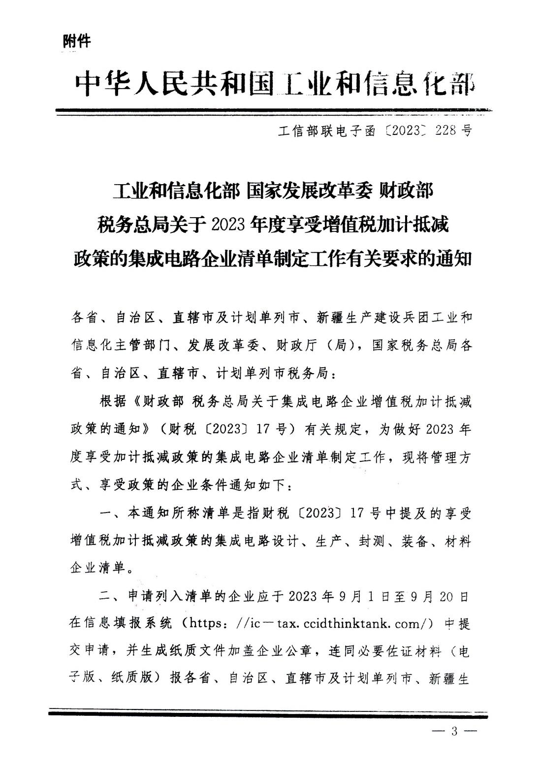 關(guān)于2023年度享受增值稅加計抵減政策的集成電路企業(yè)清單制定工作有關(guān)要求的通知
